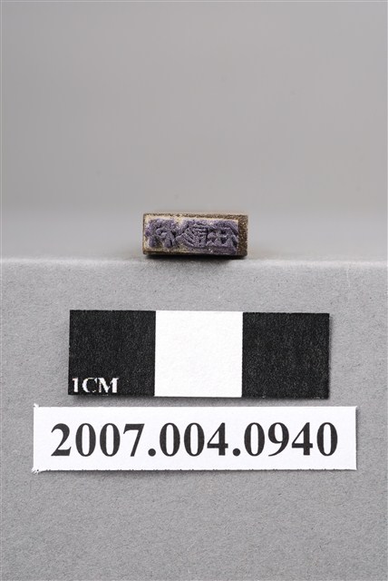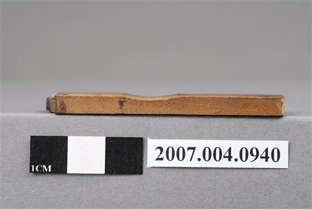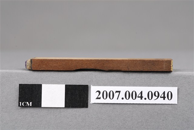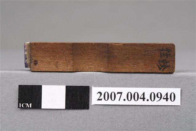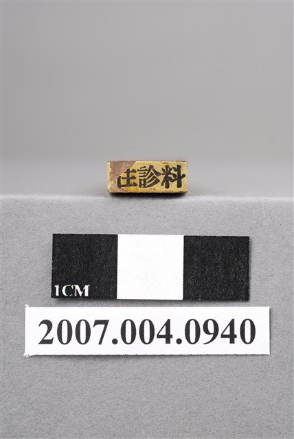本物件為往診料印章,該只印章由木頭製成,呈長方形,中間部分略有凹陷以方便拿取使用,印章尾端寫有「往診料」三字以供辨識,但「往」字略有脫落。尾端木頭處亦用黑字寫著「往診」兩字,前端部分仍留有些許使用過的藍色印泥痕跡,整體保持完整。往診,即出診。