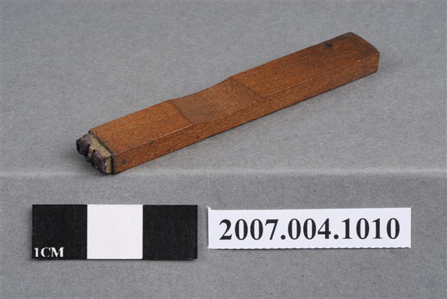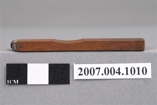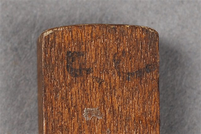 本物件為C.C印章,長方體狀,木質材質。該印章刻字處同為木質,刻有「C.C」字樣,雕刻方式為陽刻,有使用痕跡。