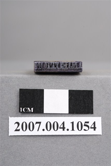 本物件為INJECTION印章,長方體狀,木質材質。該印章刻字處同為木質,刻有「INJECTION」字樣,雕刻方式為陽刻,有使用痕跡,側邊有黑色手寫「注射」。