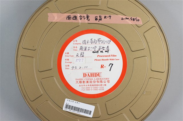 1. 《南進臺灣》第7卷翻聲片,本件為本館2007-2008年委託國立臺南藝術大學音像紀錄研究所整飭原拷貝片,從原拷貝片複製而來之翻聲片,採35mm聚酯片片基,廠牌不明,膠片全長597呎1格,日語發音。翻聲片僅有聲軌並無影像,為光學面積與光學密度聲軌。保存狀況良好,無明顯劣化或損傷。2. 翻聲片在481呎15處有接頭。與原拷貝對比,翻聲片多出2格,片長為597呎1格。3. 《南進臺灣》透過紀錄片的形式,將臺灣影像記錄下來,所拍攝的是臺灣的建築、產業、日常與生活街景,但當中的聲音與脈絡被抽離,取而代之的,是藉由嚴肅的旁白來詮釋所拍攝下的影像,宣揚總督府治理政績與統治正當性。第7卷旁白介紹了臺東與相關建設、提及奎那樹(金雞納樹)是治療瘧疾、製作解熱劑的原料,並介紹「高砂族」熱衷文化,「想要脫離原始的生活,邁向經濟發展的生活。」,若不小心稱呼他們為「蕃人」,他們會生氣並說自己是「日本人」,請不要稱他們為「蕃人」。影片最末再次強調臺灣作為南進基地的重要性。4. 《南進臺灣》影片由實業時代社、財界之日本社製作、臺灣總督府協助拍攝、永岡涼風、枠本誠一監製,拍攝年代約為1937~1940年,總時長約65分鐘,主要內容在說明臺灣作為日本南進基地的重要性,以統治者的角度關注殖民政府所帶來的建設與成果,並從臺灣北至南再到東,逐一介紹各地的建設、產業與物產。