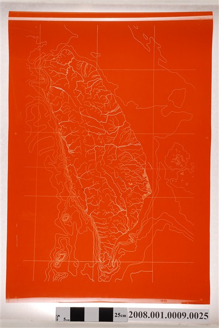 〈四十萬分一臺灣地區〉手繪製版膠片地形暈渲紅版