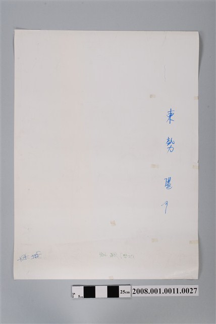 本件背面註記有「東勢陽片」等字,原本應為捐贈者於收藏〈臺中縣東勢鎮行政區域圖〉製版膠片的包裝紙。