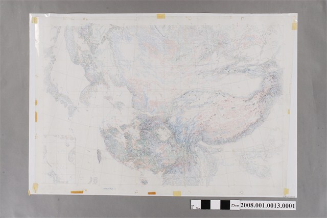 本物件是吳信政教授製作〈中華民國〉地圖印刷製版用膠片之一。成圖比例尺四百八十五萬分之一,編繪者為吳信政、邱淑敏、林翠珣、陳美雲,1989年8月由甘霖出版社出版。
