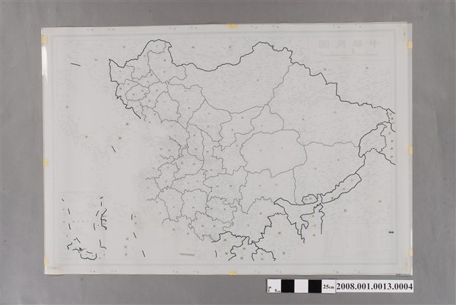 本物件是吳信政教授製作〈中華民國〉地圖印刷製版用膠片之一。成圖比例尺四百八十五萬分之一,編繪者為吳信政、邱淑敏、林翠珣、陳美雲,1989年8月由甘霖出版社出版。
