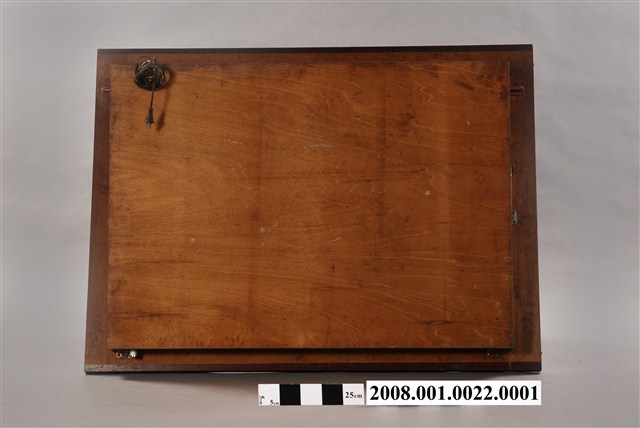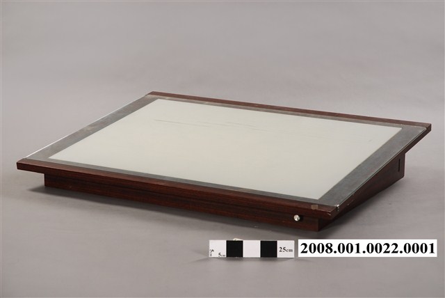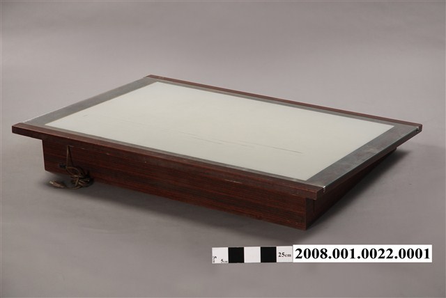 本件為吳信政教授繪製地圖時所使用的光桌。光桌的桌板內建燈管,可以從底下打光,將光投射到桌面,利用透光加以描圖。手工繪製地圖時代,清繪地圖時需要參考既有圖資,則可將參考地圖放置光桌的桌面,清繪地圖之描圖紙或膠片置於參考圖之上,則參考圖之圖像可在描圖紙或膠片上透視,方便繪製地圖。