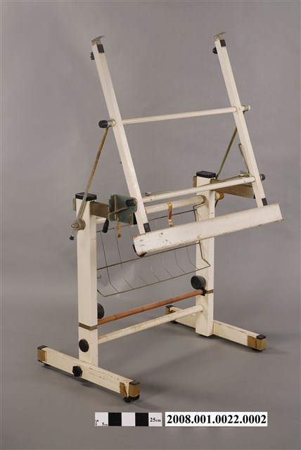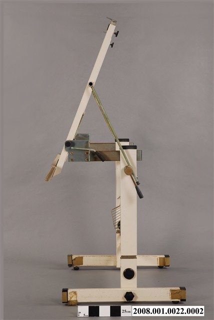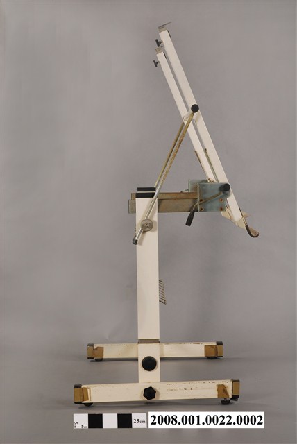 本件為吳信政教授繪製地圖時所使用的光桌製圖架。製圖架可支撐光桌,並在一定角度內可傾斜桌面,便利製圖者使用。