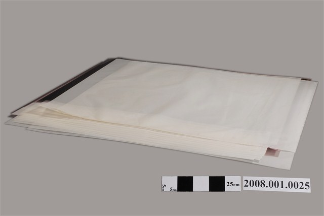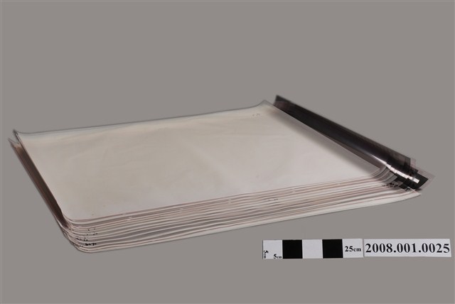 本批物件是平版印刷使用的平網網版。平網網版是用於印刷上灰色調的點狀表現,材質可分為紙質或膠片,是一種透明的薄貼紙或薄片,上有點狀構成的面(或花紋),依線數和灰度差異,顯現不同色相的灰色調。製圖時使用方式是割下將想填滿灰色區域的形狀,再將此貼紙或膠片貼到清繪的描圖紙或膠片上方。本批平網網版尺寸為全開,灰度自5%至80%不等,為吳信政教授製作地圖時,使建物或土地利用之面符號呈現平網網版套色效果。
