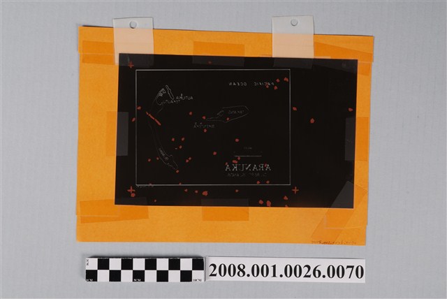 本膠片為陰片,材質為製版用照相機拍出的軟片,分色片之一,內容為包含圖名、圖框、島嶼、地名、出版資訊,包含多種圖層的資訊,右上角寫有「8"」文字。本圖繪製範圍為阿拉努卡環礁。阿拉努卡環礁是太平洋島國吉里巴斯的環礁,屬於吉爾伯特群島的一部分,成圖包含環礁結構如島嶼、潟湖、沙洲、淺灘,被海域包圍。