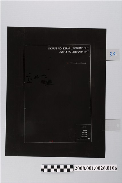 本件是吳信政教授製作〈臺灣的國家公園〉(THE NATIONAL PARKS OF TAIWAN, THE REPUBLIC OF CHINA)英文地圖所使用的膠片,該圖使用於國家公園專刊。