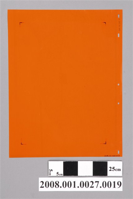 本物件為吳信政教授轉製農委會發行二十五萬分之一〈臺灣地區〉局部為膠片,編為「3.宜蘭縣」,並複製5份。 〈臺灣地區〉地圖,由行政院農業委員會主辦,航空測量及遙感探測學會編制,1984年10月出版。