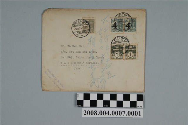 2008.004.0007.0001 丹麥「Harry R. Rimdal」寄臺北「柯連セイ」信封