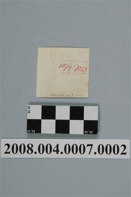 本物件為男子獨照,照片正面中男子應為Harry R. Rimdal,身著成套西裝看向右方。背面書以紅字「15/7-1913」。