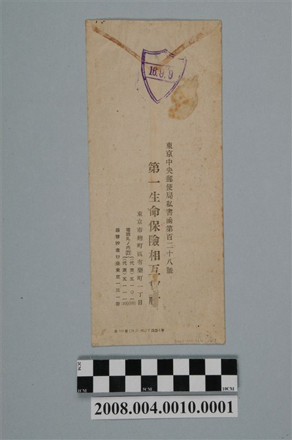 昭和16年東京市第一生命保險相互會社寄臺北市何勝珠通知書