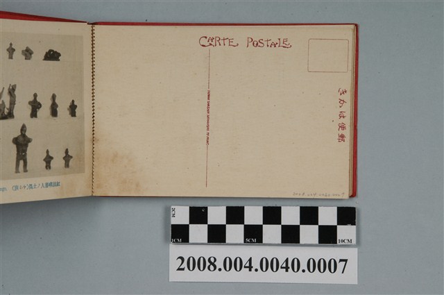 1.本物件為以臺灣原住民族之檳榔首飾為主之明信片。應是臺灣博物館內之展示之照片。照片檳榔首飾之展示品。明信片正面下方載有「臺灣蕃人首飾檳榔入」、「Neck Laces and Palm-Seeds bags Taiwan Aborigines.」之字樣。該照片地點為今臺北市中正區之二二八和平紀念公園內的臺灣博物館。背面為明信片書寫面,右上方有郵票黏貼處,右側有以漢字、平假名書寫之「郵便はがき」,正上方印有「CARTE POSTALE」,中央印有「TAIWAN SHASHIN SEIHANSHO. TO PRINT.」之字樣。2.臺灣總督府博物館成立於西元1908年,是臺灣歷史最悠久的博物館 ,原名臺灣總督府民政部殖產局附屬博物館,當時並不是位於臺北新公園內。1913年在現址籌建新館,設計者為野村一郎與荒木榮一,以西方巴洛克及文藝復興時期的樣式折衷規劃建造,1915年完工。主要介紹臺灣本土自然史領域,亦包含人類學、地質學、動物學和植物學四大研究範疇。現為國立臺灣博物館,亦為國定古蹟。