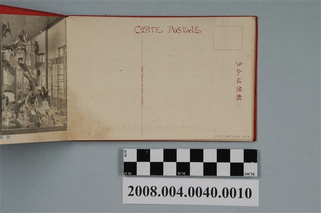1.本物件為以爪哇人舞踏面具為主題之明信片。應是臺灣博物館內之展示之照片。照片為爪哇人舞踏面具等展示品。明信片正面下方載有「爪哇土人舞踏用面」、「Javanese Dance Maskas」之字樣。該照片地點為今臺北市中正區之二二八和平紀念公園內的臺灣博物館。背面為明信片書寫面,右上方有郵票黏貼處,右側有以漢字、平假名書寫之「郵便はがき」,正上方印有「CARTE POSTALE」,中央印有「TAIWAN SHASHIN SEIHANSHO. TO PRINT.」之字樣。