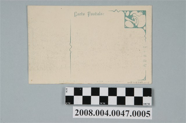 1.本物件以臺灣全島名所為主題,黑白樣式。正面為練習所大門,設有較高的深色大門,旁有一深色小門。明信片下方以漢字書寫「練習所(其一)正門」、以英文字母書寫「TRAINING SCHOOL AT TAIHOKU」。明信片左下方以漢字標示「臺北文明堂製」。背面右上角為郵票黏貼處,該處有一女子手握畫盤之圖像。明信片右側有以漢字、平假名書寫之「郵便はがき」,上方以英文字母書寫「CARTE POSTALE」。2.西元1897年成立臺灣總督府巡查看守教習所,為警察官及司獄官練習所的前身,而臺灣總督府警察官及司獄官練習所則成立於1898年,位於臺北市八甲町,即為今龍山國中,為培養警察官與司獄官的機構,受訓時間為1年,期課程內容還有學習臺語的課程,戰後改制為臺灣省警察訓練所,後被臺灣警察幹部訓練班所取代。