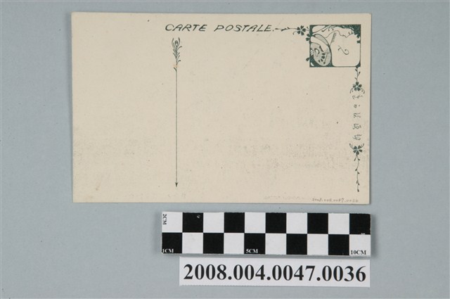 1.本文物為以臺北專賣局全景為主題之明信片,正面為專賣局黑白照片,畫面中可見其建物,兩側有煙囪等工廠之設施,質疑此建物並非專賣局,且其建物樣式亦與專賣局不同,下方有2段文字,第1段「THE MONOPOLY BUREAU.」,第2段「(1新)(臺北)專賣局ノ全景」;背面為空白明信片直式書寫面,以黑色單色印刷,左上有女子圖案,上方有「郵便はかき」字樣,左側有「CARTE POSTALE」字樣。2.臺灣總督府專賣局竣工於西元1922年,建築格式為後文藝復興時期,臺灣的專賣制度始於日治,由1897年鴉片的專賣為首,至1943年為止,專賣品共計有鴉片、食鹽、樟腦、香菸、酒類、火柴、度量衡及石油8項,戰後,專賣局改為臺灣省菸酒公賣局,現今為臺灣菸酒股份有限公司。