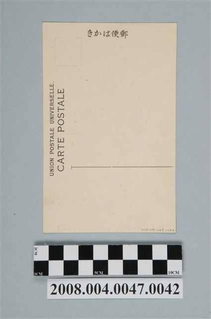1.本文物為以原住民美人為主題之明信片,正面為濁原住民美人黑白照片,畫面中可見1名女子之半身照,頭戴有頭飾,且有黥面,可能為泰雅族婦女,下方有2段文字,第1段「(33)ABORIGINES WOMAN, FORMOSA.」,第2段「臺灣生番美人」;背面為空白明信片直式書寫面,以黑色單色印刷,左上為郵票黏貼處,上方有「郵便はかき」字樣,左側有「UNION POSTALE UNIVERSELLE」及「CARTE POSTALE」2行字樣。2.臺灣的原住民屬南島語族,日治時期著手對於原住民進行調查並分類為「族」。其中西元1897年伊能嘉矩為調查原住民,進行為期192天的踏查,後將臺灣原住民分為七個族群,包括泰雅族、布農族、鄒族、澤利先族、排灣族、漂馬族、阿美族。