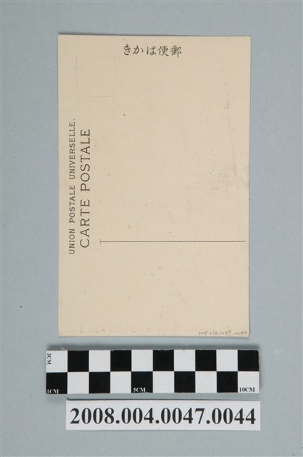 1.本文物為以臺東附近原住民為主題之明信片,正面為原住民之黑白照片,畫面中可見1原住民男子穿著部落之衣物,腰際配有1把刀,下方有2段文字,第1段「(34)ABORIGINE, FORMOSA.」,第2段「臺灣臺東附近生番人」;背面為空白明信片直式書寫面,以黑色單色印刷,左上為郵票黏貼處,上方有「郵便はかき」字樣,左側有「UNION POSTALE UNIVERSELLE」及「CARTE POSTALE」2行字樣。2.臺灣的原住民屬南島語族,日治時期著手對於原住民進行調查並分類為「族」。其中西元1897年伊能嘉矩為調查原住民,進行為期192天的踏查,後將臺灣原住民分為七個族群,包括泰雅族、布農族、鄒族、澤利先族、排灣族、漂馬族、阿美族。