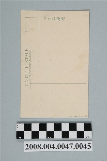 1.本文物為以臺灣原住民婦女為主題之明信片,正面為原住民婦女之黑白照片,畫面中可見3名原住民婦女坐於長板凳上,皆穿著原住民傳統服飾,下方有2段文字,第1段「(48口)GIRLS IN BARBARCUS MAN, OF FORMOSA.」,第2段「臺灣生番人婦女」;背面為空白明信片橫式書寫面,以綠色單色印刷,右上為郵票黏貼處,右側有「郵便はかき」字樣,上方有「CARTE POSTALE」及「Union Postale Universelle」2行字樣。2.臺灣的原住民屬南島語族,日治時期著手對於原住民進行調查並分類為「族」。其中西元1897年伊能嘉矩為調查原住民,進行為期192天的踏查,後將臺灣原住民分為七個族群,包括泰雅族、布農族、鄒族、澤利先族、排灣族、漂馬族、阿美族。