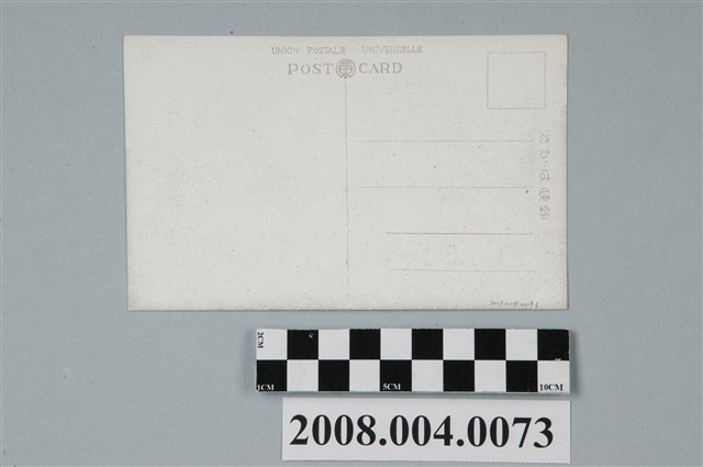 1. 本物件為以臺南名所安平燈臺為主題之明信片,其正面為安平燈臺黑白照片,影像中央處有1高臺建物,其上方有一屋頂為半圓形,下方有1外窗之淺色建築,建築物周邊種有許多植披,影像左上方有「(台南名所)」、「安平燈台」、「(赤崁城跡)」。背面為空白明信片橫式書寫面,以黑灰色單色印刷,右上方框為郵票黏貼處,右側有「郵便はがき」,上方有「UNION POSTALE UNIVERSELLE」、「POST CARD」,中央分隔線上方有一圓形圖樣,其中有疑似「東」或「山東」字樣。2. 熱蘭遮城,即赤崁城趾、ゼーランヂヤ城趾,今之安平古堡,位於今臺南市安平區。係荷蘭人於西元1624年所建,1629年完工,築城材料主要由巴達維亞運來,1628年曾在此地發生過濱田彌兵衛事件,1661年鄭成功率兵由澎湖出發經安平鹿耳門登陸,侵襲普羅民遮城成功後,荷蘭人於熱蘭遮城死守9個月後與鄭成功和談並撤退回巴達維亞。此後,鄭成功將熱蘭遮城改稱安平鎮並居住於此。安平燈臺1872年設立於城內,原為一單純之燈火矩,1891年改建為一方型鐵塔,1909年再改建為磚造的白色圓形西式燈塔。