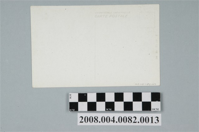 1. 本物件為以臺南開山神社為主題的明信片,正面為臺南開山神社的黑白照片。神社內種有許多大樹,正面為拜殿,可見鈴紐與賽錢箱。拜殿兩旁另有建物。右下方印有「(台南名所)開山神社」。背面為書寫面,右上角為郵票黏貼處,右側印有「郵便はがき」,中間偏右方印有「UNION POSTALE UNIVERSELLE」、「CARTE POSTALE」。中間有一分隔線。2. 神社於臺灣的興建,與殖民政府想透徹的進行皇民化運動有關。臺灣地區神社暴增於西元1936至1940年間,即是配合皇民化運動之進行。開山神社位於今臺南市中西區,清領時期為開臺聖王廟;1875年沈葆楨奏請朝廷改稱其為延平郡王廟(又稱延平郡王祠),主奉鄭成功;1897年日本殖民政府欲利用鄭成功之母為日本人田川氏此點,供奉鄭成功及其母親,以彰顯日本於臺灣統治的正當性,故將此改為開山神社,列為縣社。目前中央正殿設有鄭成功塑像與神位,左為甘輝將軍、右為張禮將軍,後殿祭祀其生母田川氏,左殿為監王祠祀有鄭克塽,右殿則為寧靖祠,祀有寧靖王及其五妃。
