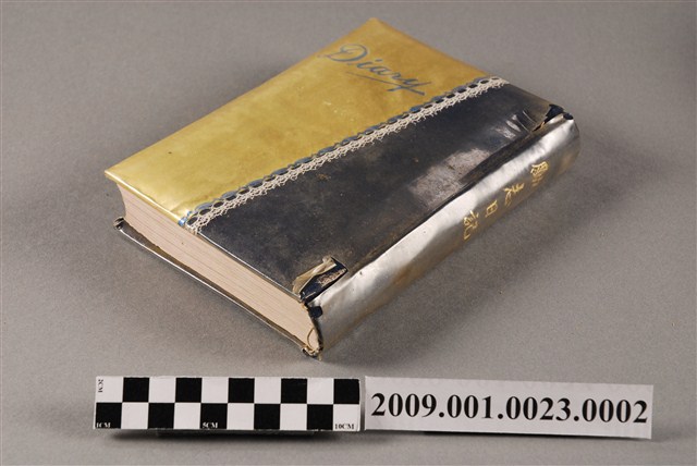 1.本件陸季盈1972-1974年日記,書的表面包裹1層透明塑膠封套,書背上、下邊緣處已破損。封面的左側有1塊帶花邊的黃色布環繞著,上方有「Dairy」等字,底下封面則是深藍色絨布皮表面,書背有燙金字「勵志日記」4字,內文以中文書寫,保存完整。