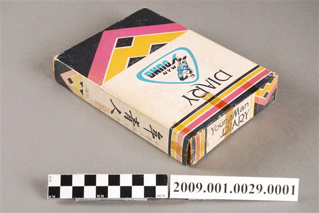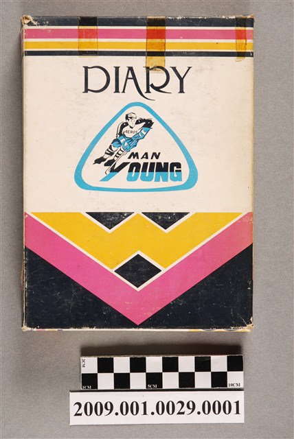 1.本件陸季盈1981年日記書殼正、反面圖案相同,封面上緣、下緣有黑色、黃色、粉紅色組合成的邊,中間偏上方有個圓弧的三角形,裏面是1名曲棍球員及「MAN YOUNG」等字,書殼的書背印有「年青人日記」及手寫「中華民國七十年」等字,書殼邊緣有幾處粘貼過透明膠帶的痕跡,保存完整。