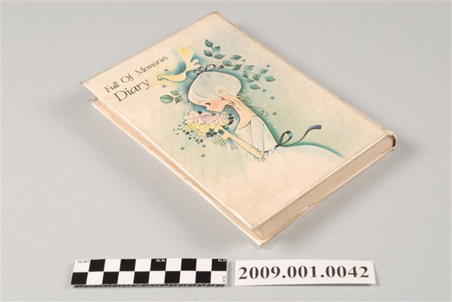 陸季盈1994年日記,白色封皮,女子側臉圖案封面,題名「FULL OF MEMORIES DIARY」,書背為「MY DIARY」,內文以中文書寫。