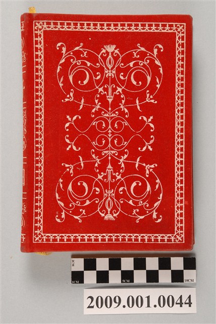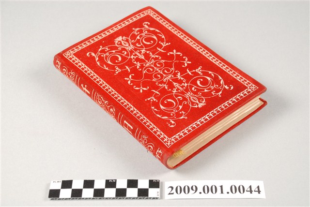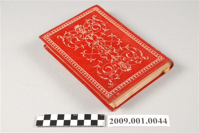 陸季盈1996年日記,紅色絨布皮,封面燙印白色花紋,書背題名「千錘日記」,內文以中文書寫。