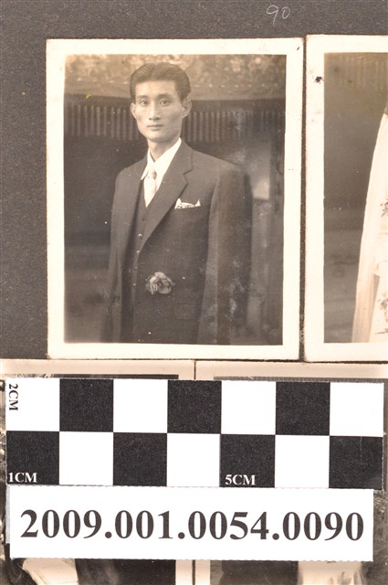 陸季盈大妹婿楊振成結婚時著黑色西裝服新郎半身個人照。
