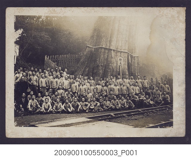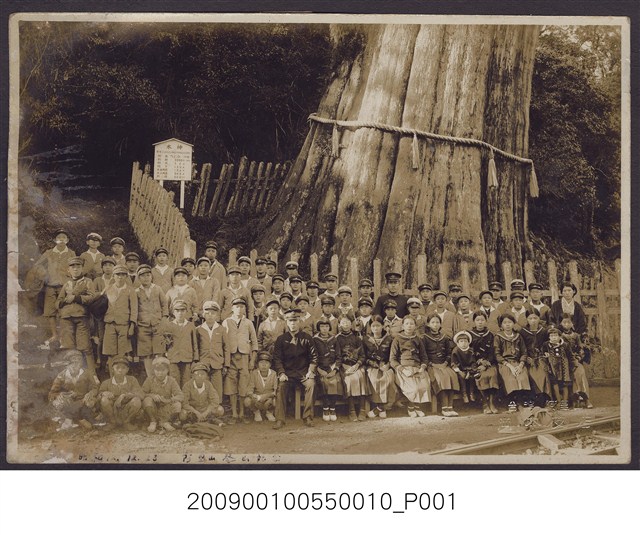 2009.001.0055.0003 穿制服學生修學旅行於阿里山神木前合照