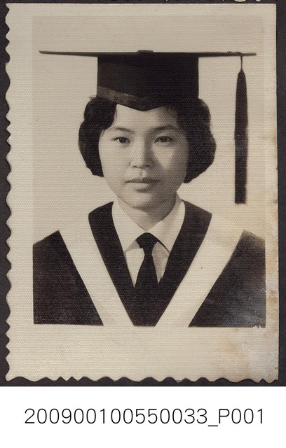 2009.001.0055.0033 著學士服女子大頭黑白照