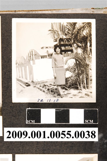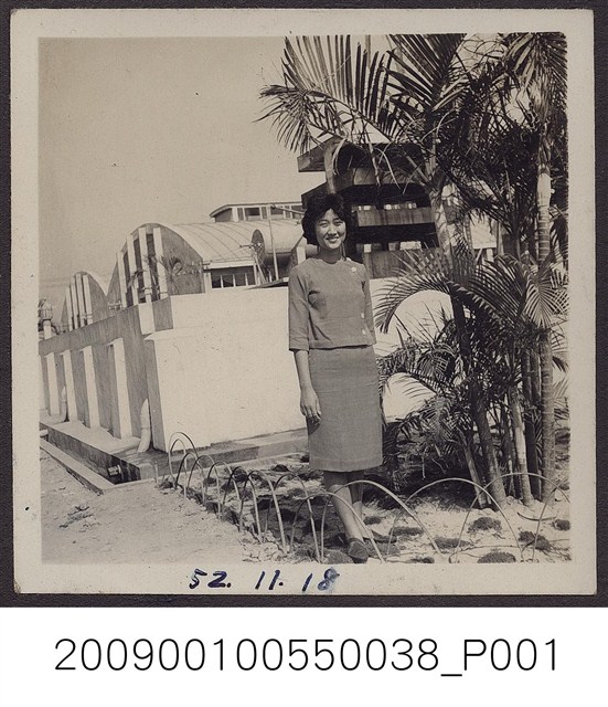 2009.001.0055.0038 穿洋裝女子於臺灣鳳梨公司鳳山工廠前留影
