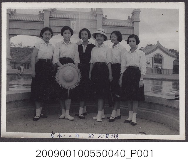 2009.001.0055.0040 高水二年六名女同學於大貝湖牌樓前留影