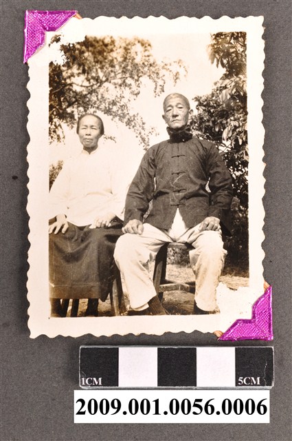 1.為陸季盈父母之合照,場所同2009.001.0054.0004為戶外。2.其左為陸季盈母親,右為陸季盈父親陸再璧。