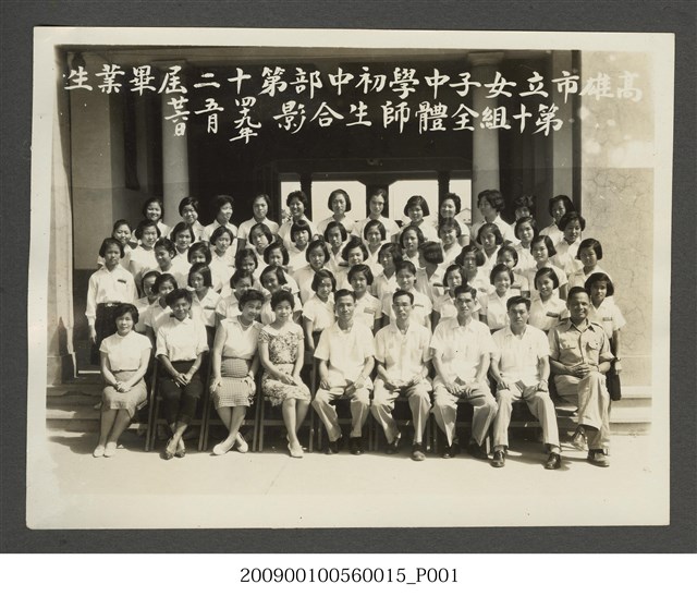 高雄市立女子中學初中部第十二屆畢業生第十組全體師生合影四十九年五月廿六日