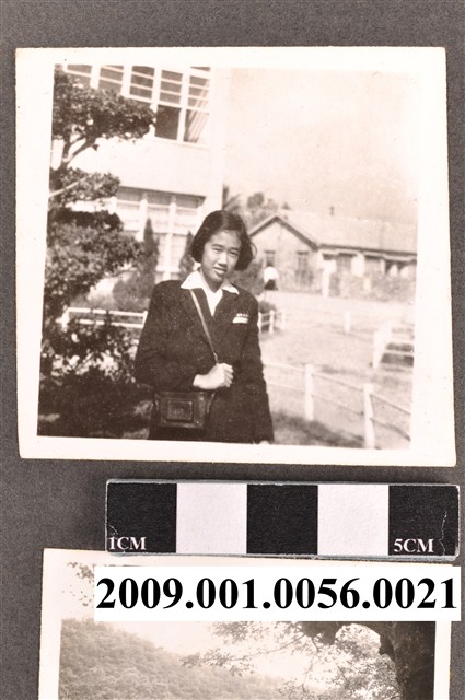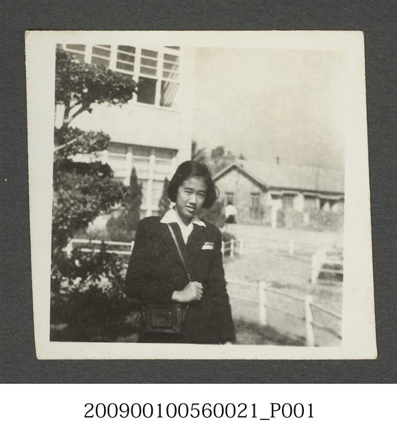 1女學生著制服包半身照,右肩有小背包,場所為戶外。