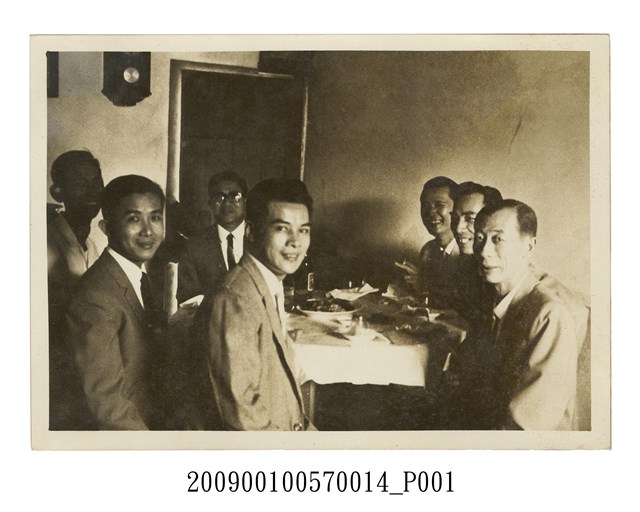 陸光惠訂婚於家中宴請親友,照片中坐桌者均為男性親友共7人。