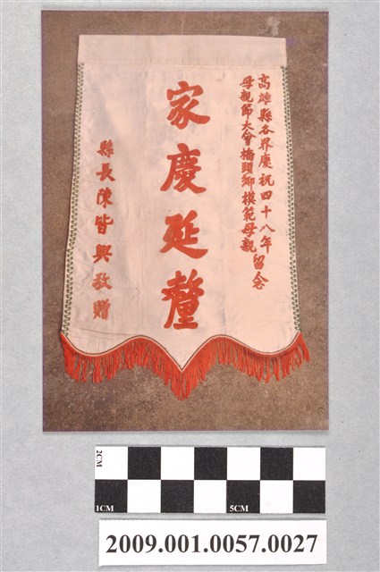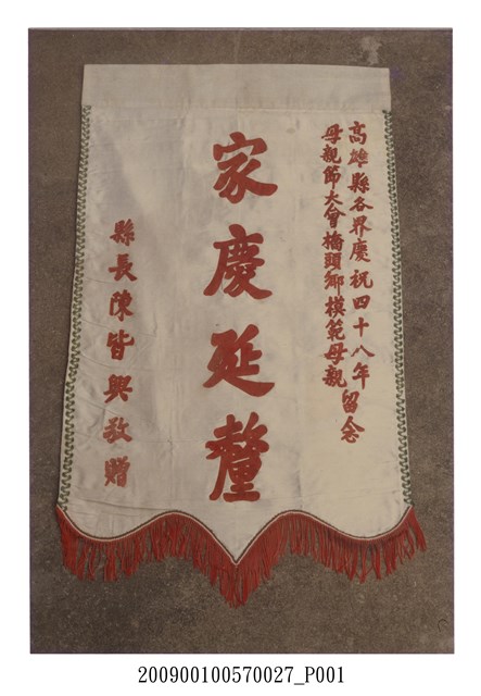 高雄縣各界慶祝48年母親節大會橋頭鄉模範母親留念,縣長陳皆與敬贈