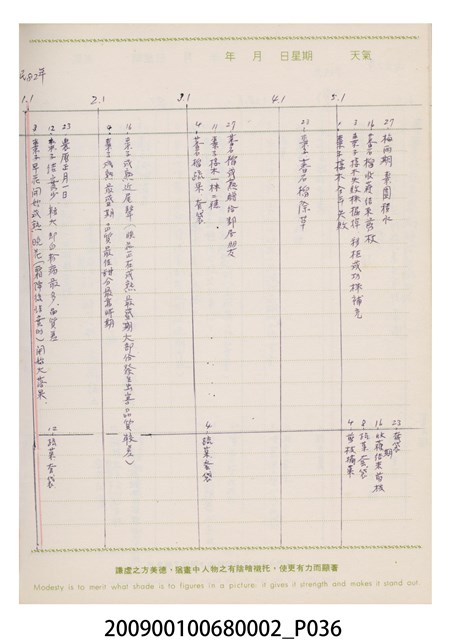 2009.001.0068 陸季盈甘蔗與棗子耕種筆記