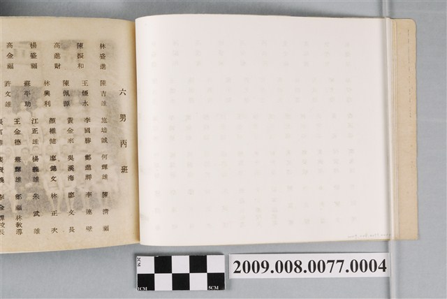 本件為六男乙班畢業班級團體照,收於民國42年(1953)7月製作《臺北市雙園國民學校第8屆畢業紀念冊》內。照片中學生共計59人,教職員3人,由左至右依序為張根湧老師、李金蟬校長、鄭福林教導。