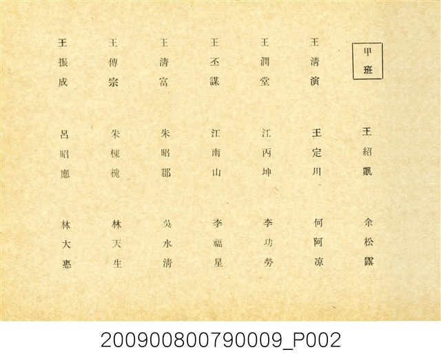 2009.008.0079.0009 中農甲班王清演等大頭照