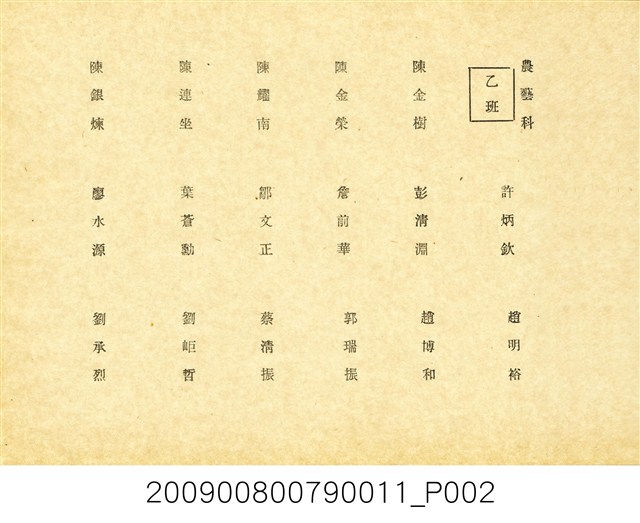 2009.008.0079.0011 中農乙班陳金樹等大頭照