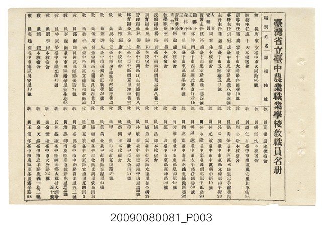 臺灣省立臺中農校(今臺中市東區中興大學附屬臺中高農)