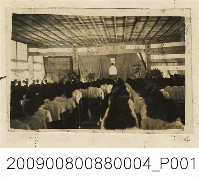 本件為臺北市立老松商業職業學校補習班第1屆結業典禮照,收於民國39年(1950)7月製作《臺北市立老松商業職業學校高級班第1屆結業紀念冊》內。臺北市立老松商業職業學校,前身為民國35年(1946)4月成立之「臺北市立老松初級中學」,由臺北市教育局長黃啟瑞倡設,招收夜間部三班,並借用臺北市老松國民學校(今臺北市立老松國民小學)教室授課。民國36年(1947)7月,改名為「老松商業職業學校」,招收日間部兩班、夜間部三班學生,至民國41年(1952)8月,改制為「臺北市立商職老松分校」,移至西藏路授課(今臺北市立華江高級中學校址),1953年校舍建造完成後兩校分離。