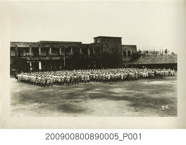 本件為臺北市立大同中學初中部第5屆朝會照,收於民國39年(1950)7月《臺北市立大同中學初中部第5屆畢業紀念冊》內,黑白印刷。照片可見全校師生集合於操場上進行朝會典禮。