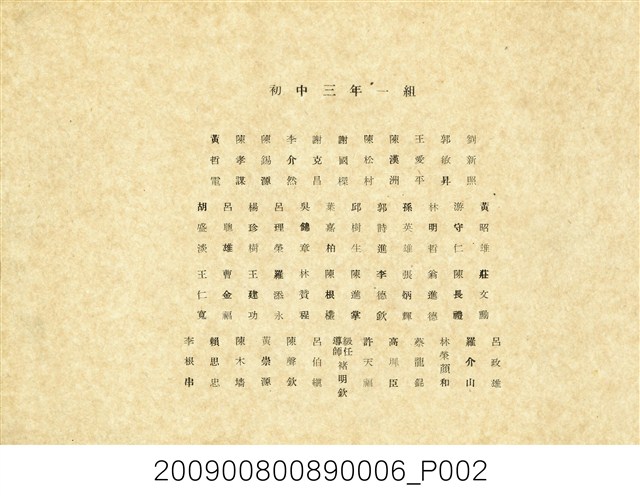 本件為臺北市立大同中學初中部第5屆三年一班畢業班級團體照,收於民國39年(1950)7月《臺北市立大同中學初中部第5屆畢業紀念冊》內。照片中學生共計47人,前排正中央為級任導師褚明欽。