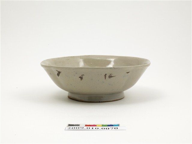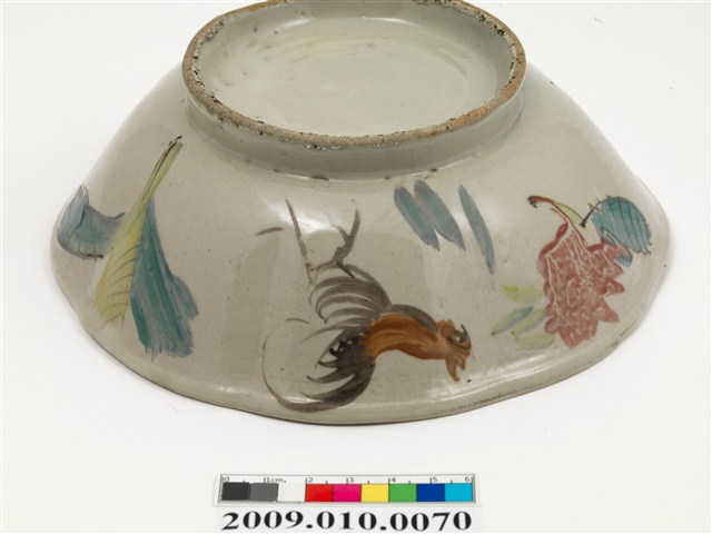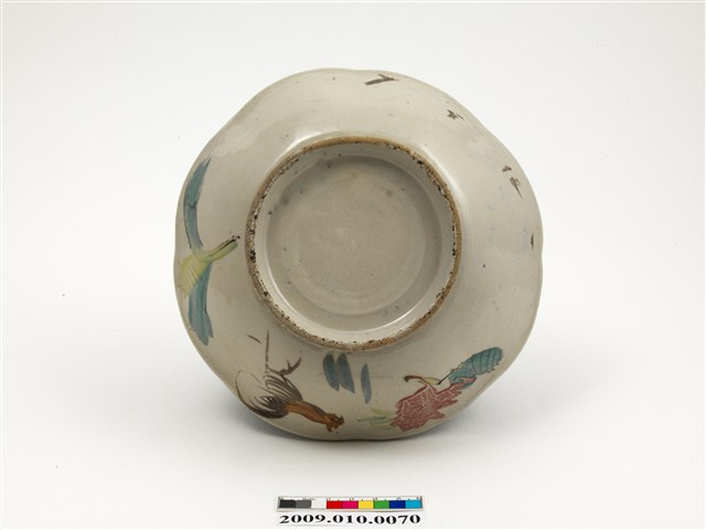 2009.010.0070 白瓷彩繪公雞鶴鳥紋花口碗