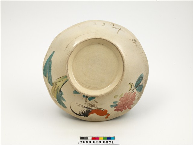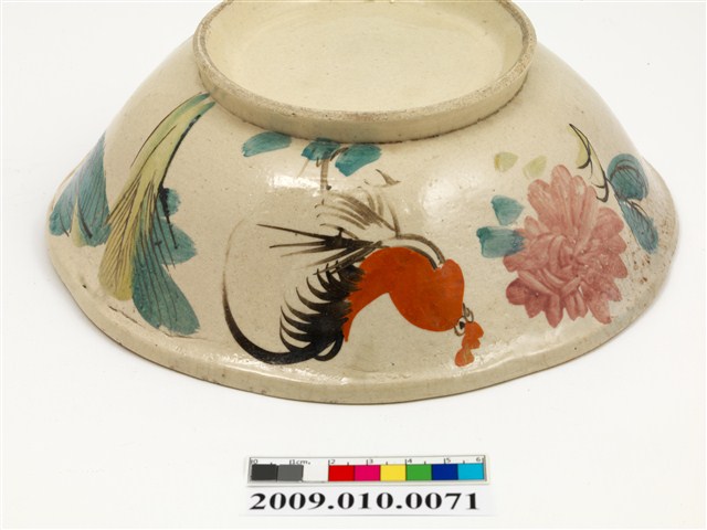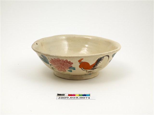 2009.010.0071 白瓷彩繪公雞花葉紋花口碗